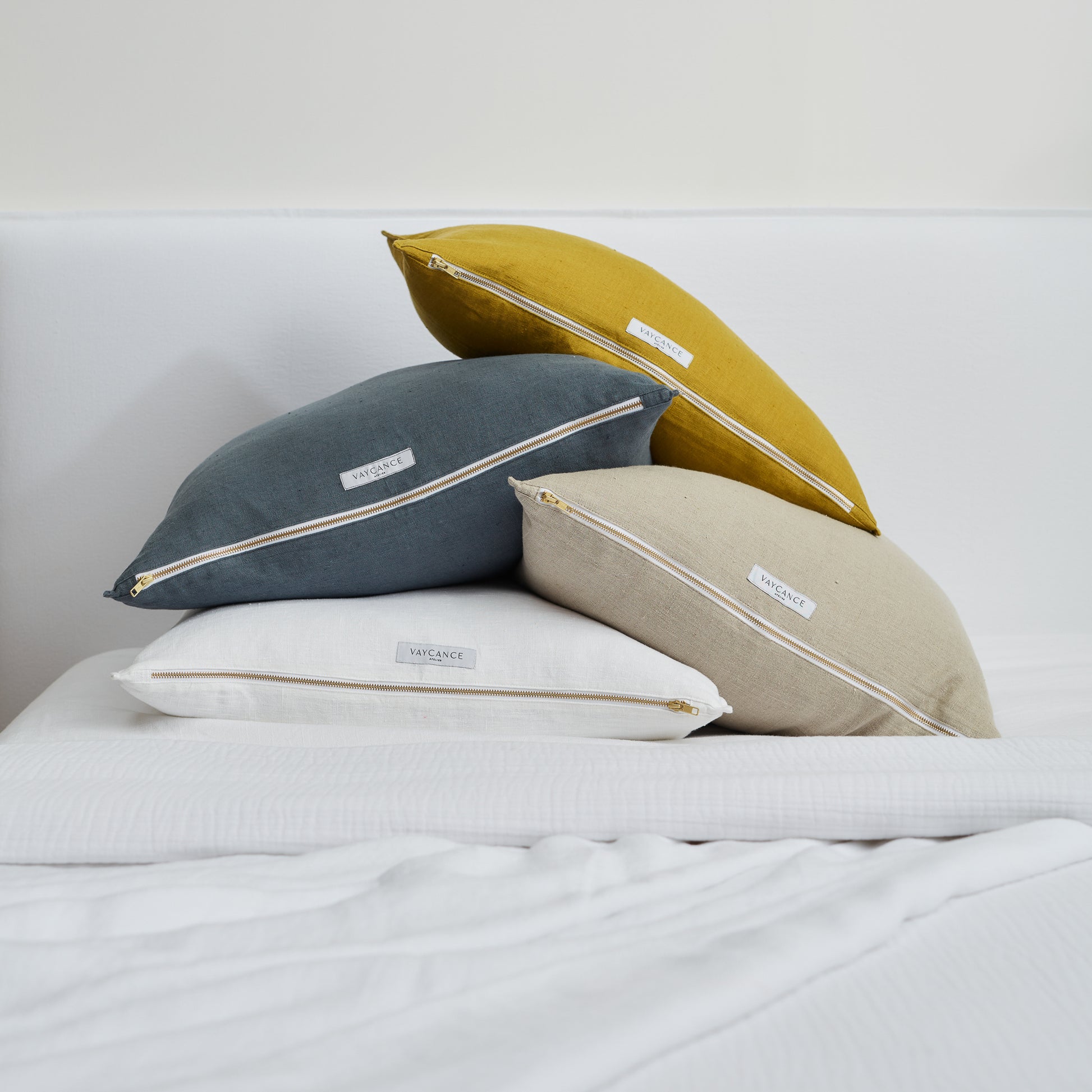 Double sided, pre-washed linen pillow with french seam, finished with brass zipper.