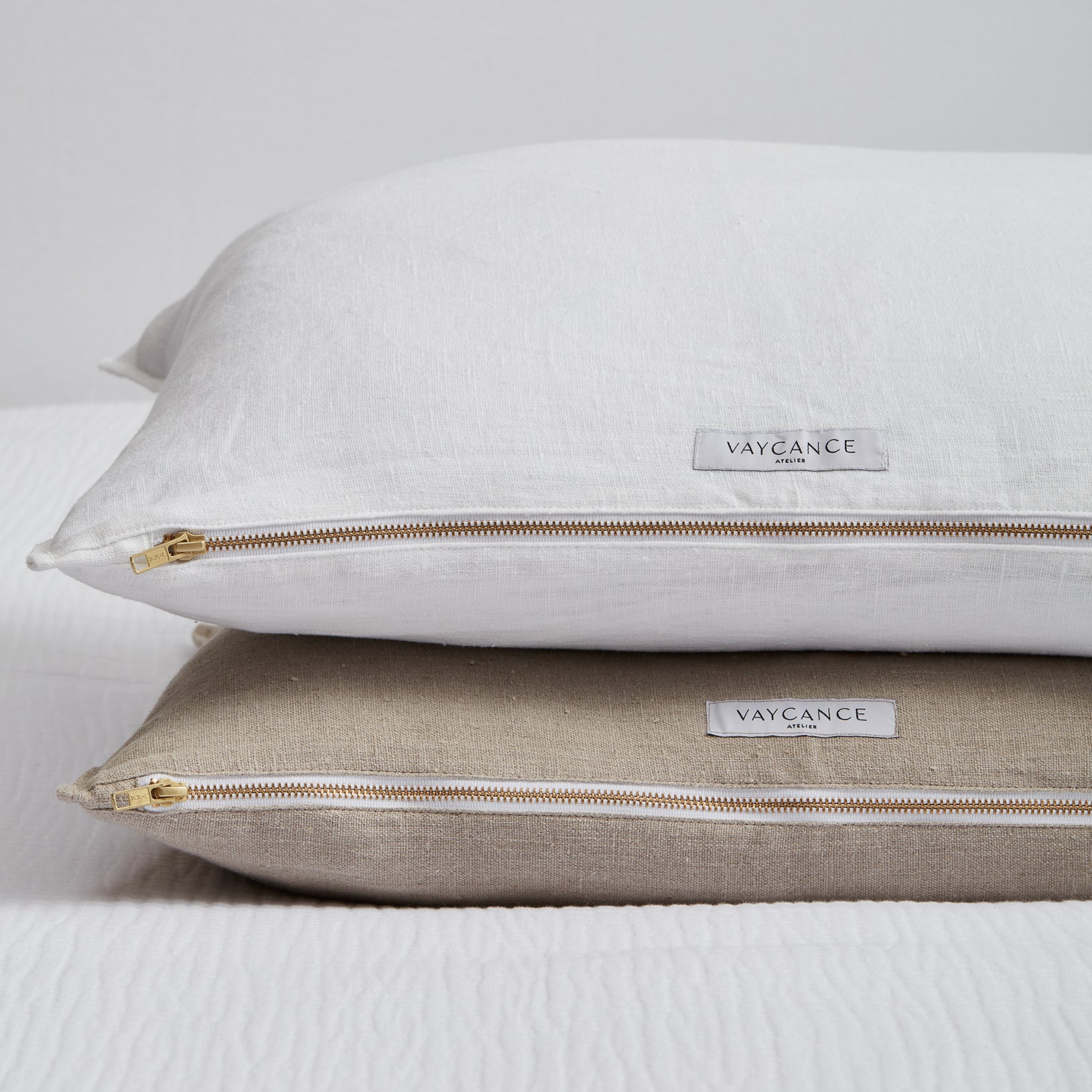 Double sided, pre-washed linen pillow with french seam, finished with brass zipper.